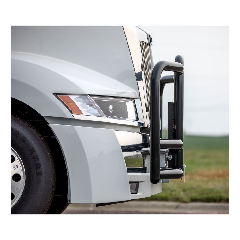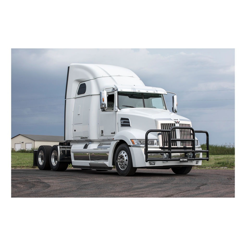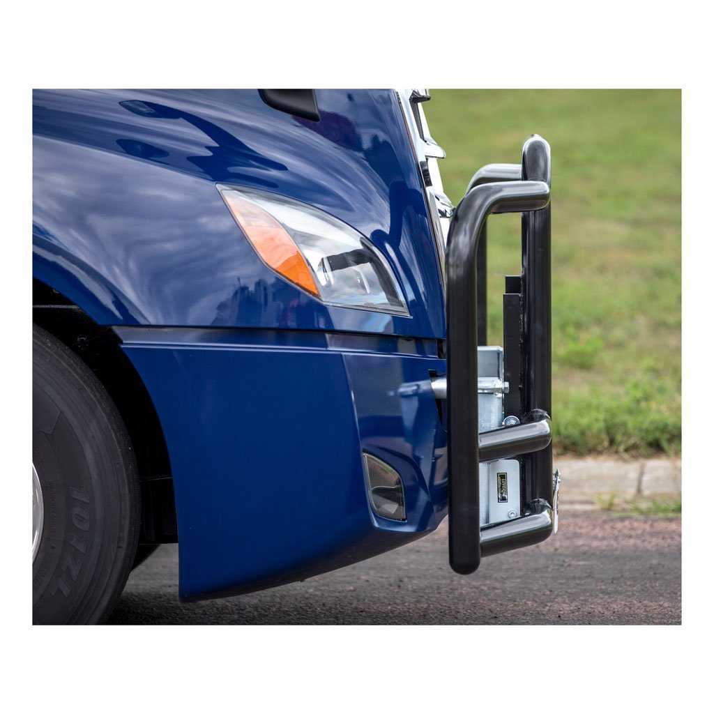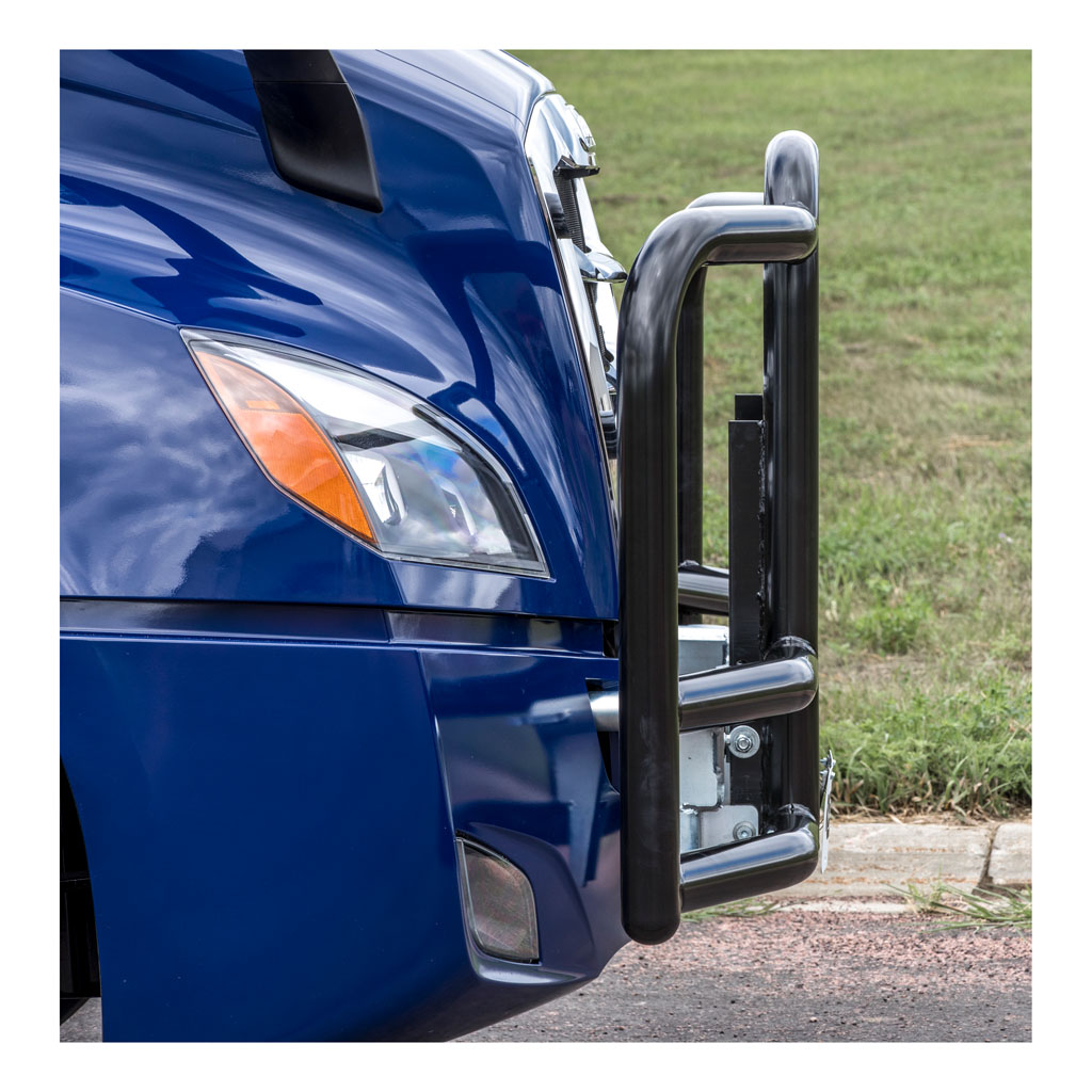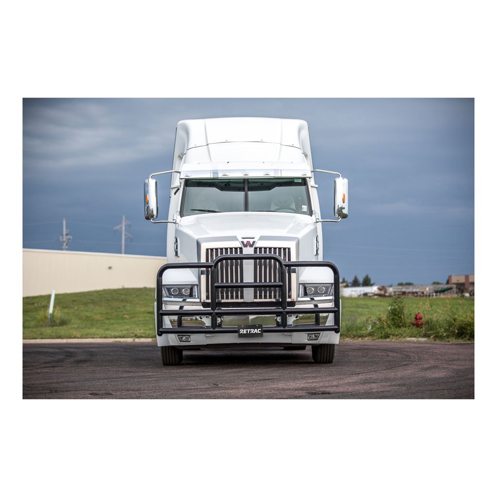 The RETRAC ProTec™ grille guard offers dependable protection for the front end of your semi or other heavy-duty truck and provides that professional, finished look you demand. It features 3" diameter tubing, welded together into a one-piece layout.