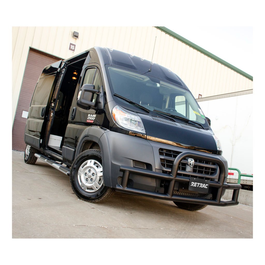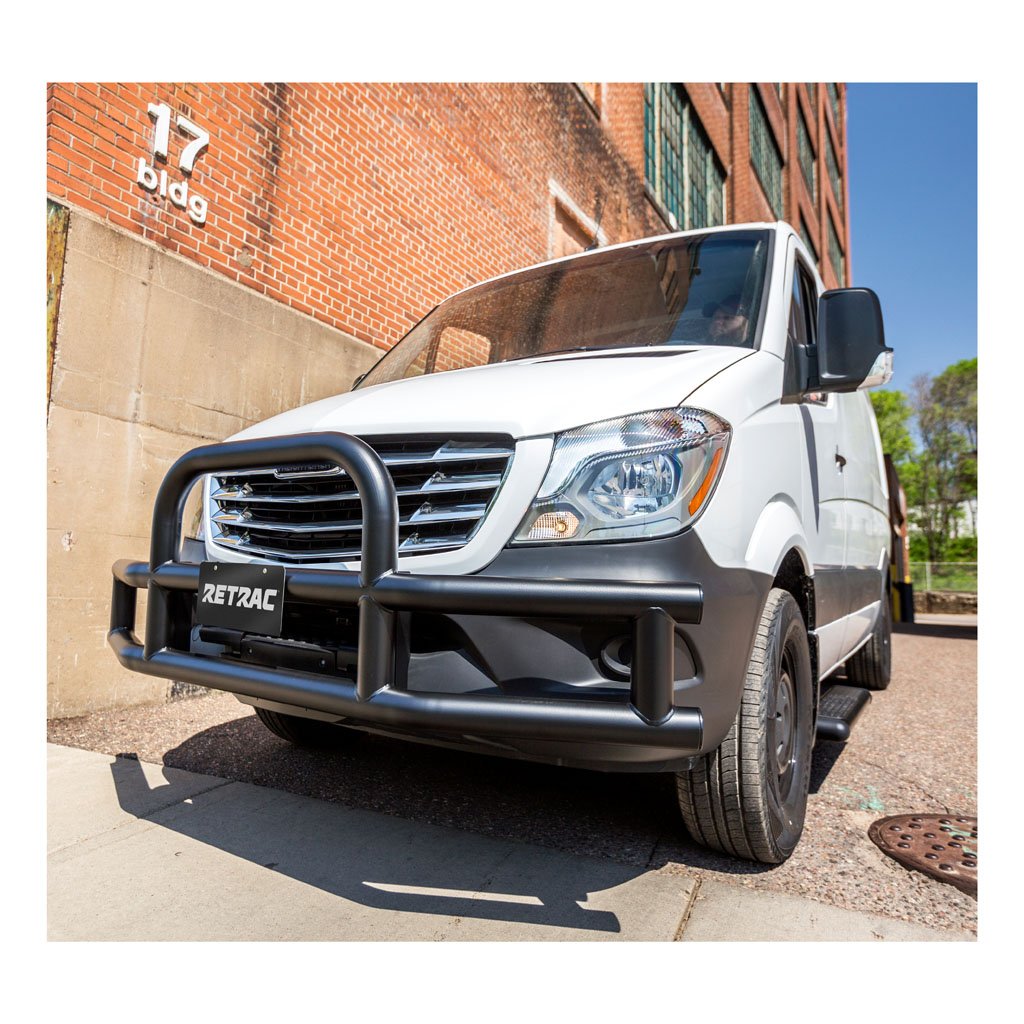 Tuff Guard® is the bumper protector of choice for commercial vans that are ready to work. This heavy-duty bumper guard features the fitment of a grille guard with the functionality of a bumper to give you style and extra protection. It is built with 3" diameter, 14-gauge stainless steel tubing, welded together to be structurally strong and perfectly suited to fit your front end. The steel is a 409 no-rust stainless steel that is both strong and corrosion-resistant, and it is covered in durable, textured black powder coat for maximum protection against the elements (brackets sold separately).