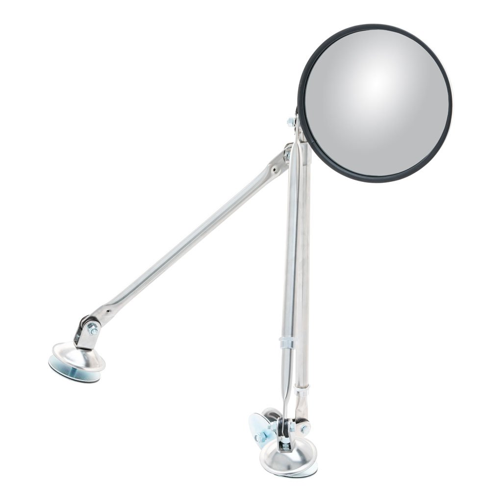 RETRAC safety assemblies add a clear view of blind spots on your heavy-duty truck, featuring a universal, adjustable design. features a bell-type mount to securely bolt into place, and it comes with an 8" convex mirror with non-glare, first-surface glass. The assembly is made from stainless steel to be strong and rust-free, and it features a polished finish for a bright accent on the vehicle.