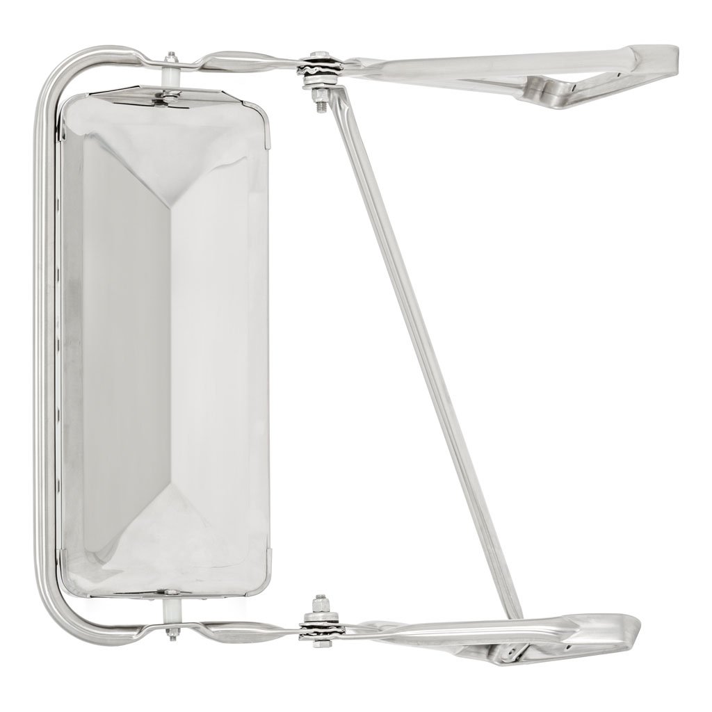 The mirror head features 7" x 16" non-glare glass to provide a wide view and a universal flange mounting system to attach to the included loop. It is constructed from stainless steel for excellent rust resistance, and it features a polished finish for a bright accent.
