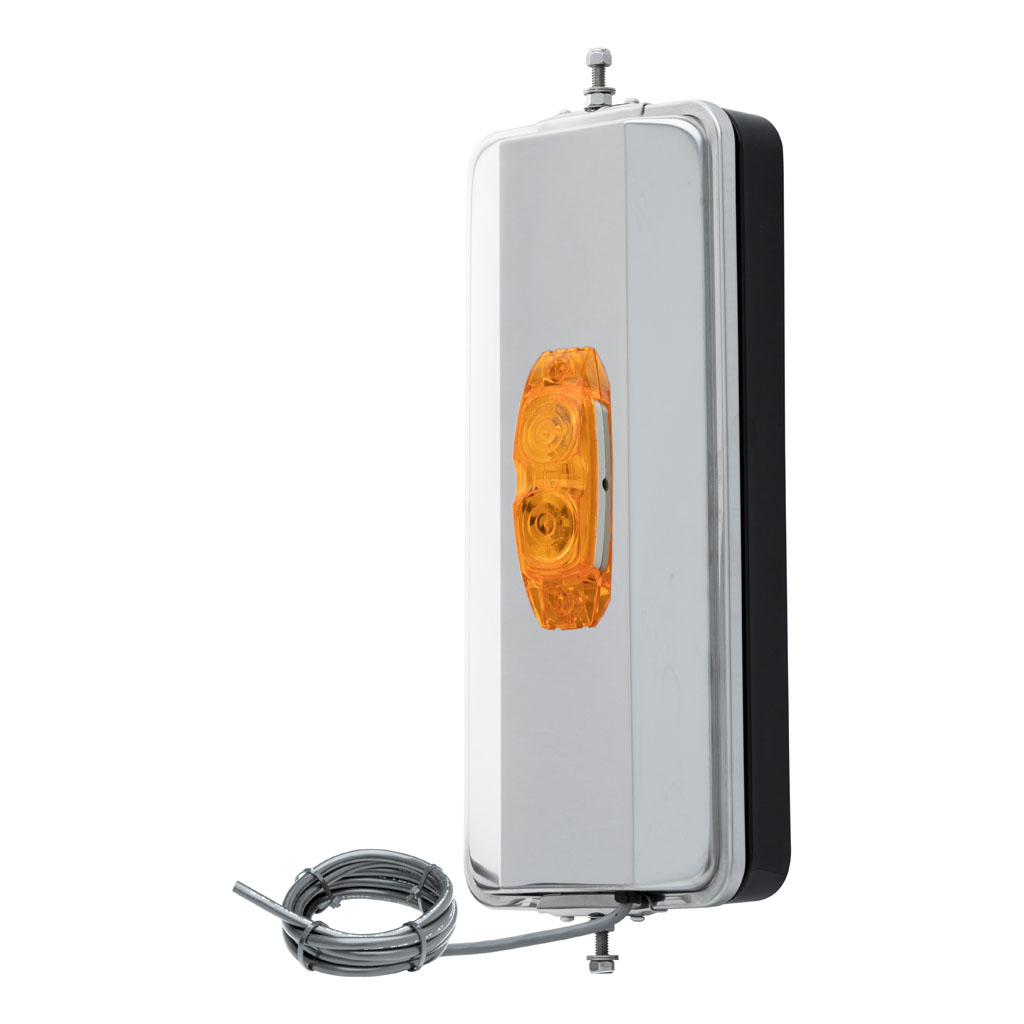 This power mirror is highly adjustable, featuring a four-way actuator to tilt the glass vertically or horizontally, to further reduce blind spots. It is constructed with stamped metal to be rigid and vibration-resistant, and it comes with an integrated marker light and a polished stainless backing for a clean, bright accent. It also features the RETRAC smart heater: a computer-printed, self-regulating heater that evenly and automatically defrosts the glass without the danger of overheating.