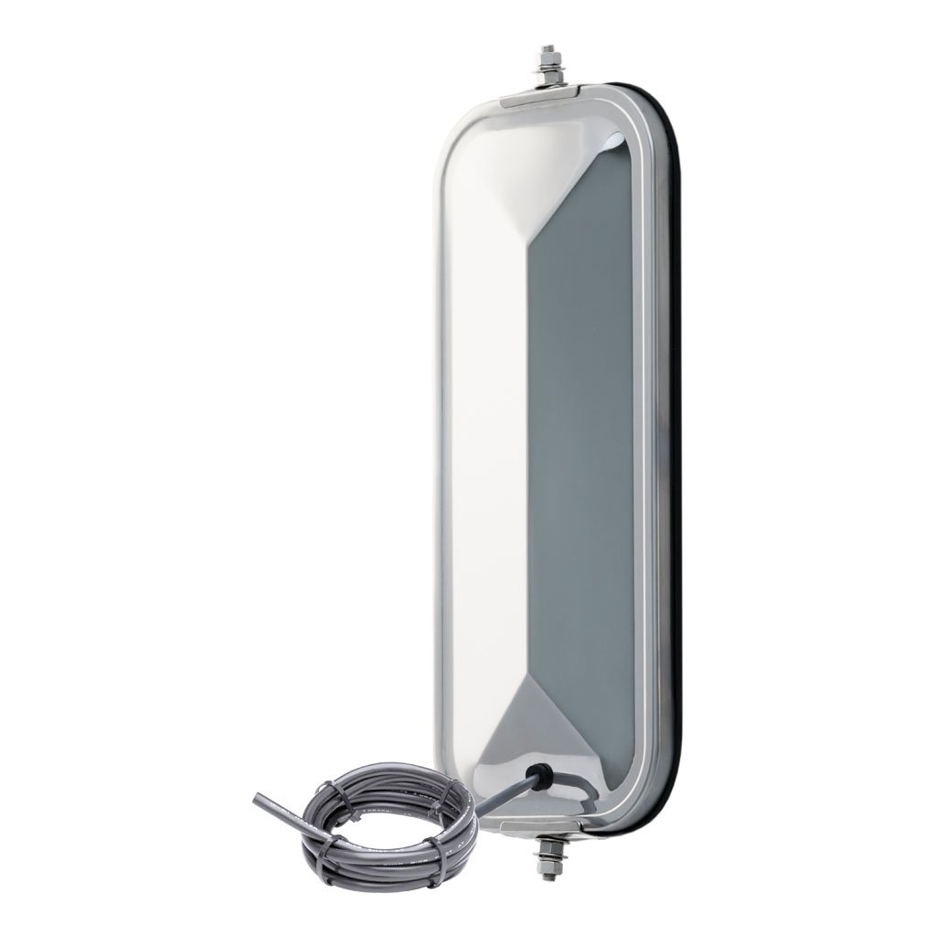 Finding the right replacement mirror for your truck is easy with RETRAC west coast mirrors. This pyramid-back west coast mirror is designed to be an ideal OEM replacement for a variety of heavy-duty trucks. It features 7" x 16" glass to provide a wide view and a universal stud mounting system to attach to any standard loop. It is constructed from stainless steel for excellent rust resistance, and it features a polished finish for a bright accent. It also features a built-in heater to help keep the glass defrosted in cold temperatures.