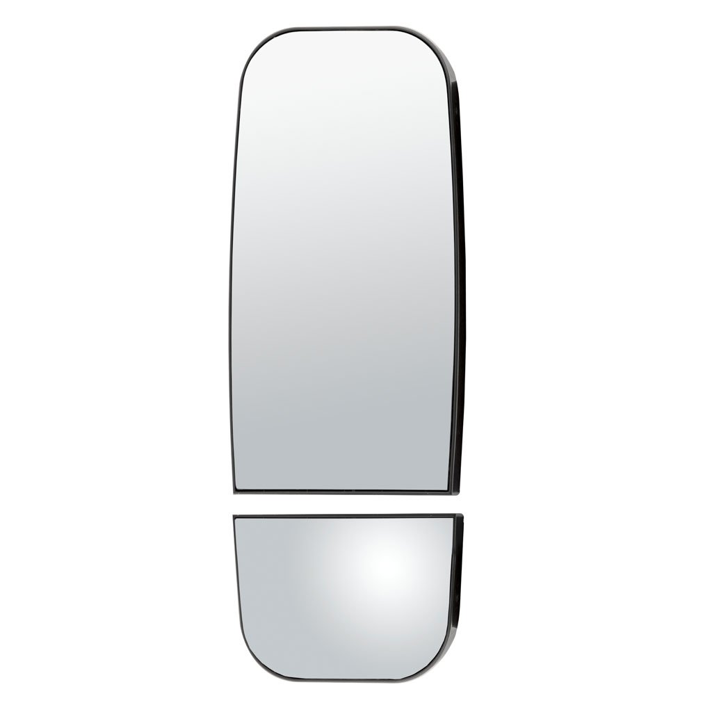This replacement glass set is designed to fit 8" x 19" dual-vision aerodynamic mirrors with a heating element. It includes both the flat glass and convex glass pieces. Both are constructed with first-surface, electro-chrome glass to eliminate glare and maximize safety.
